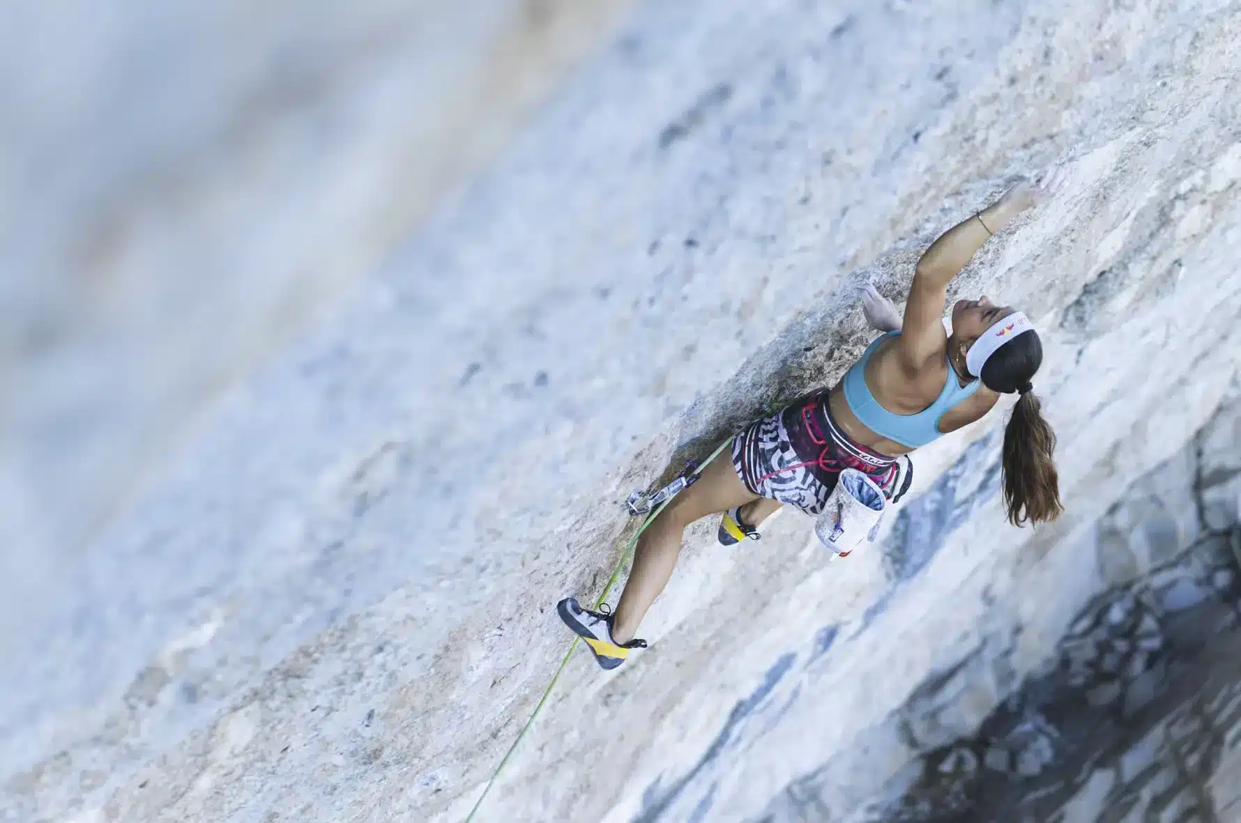 Angie was born in Canberra, Australia, in 2004. At the age of 7 and after falling out of a tree (in which she would frequently scramble around, attempting to reach the most inaccessible branches) Angie’s father decided to take her to the local rock gym where she could explore her obvious passion for climbing in a safer, more controlled environment. Her prodigeous talent was obvious from the outset: she climbed her first 31 (8b) — ‘Swingline’ in Red River Gorge, USA, at only 9 years of age; a year later she did ‘Welcome to Tijuana’ 8c (33) in Rodellar, Spain. Angie currently spends 6 months a year in the Blue Mountains, the heart of Australian climbing, and the other 6 months traveling the world, visiting the major climbing destinations in Spain, France and the USA.